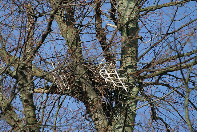 American Crows are highly social and live in family groups. These families often include offspring from previous years, who act as “helpers” to raise the current brood. Crows build large, bulky nests of sticks and twigs high up in trees (often evergreens) in spring, usually laying four to six eggs.