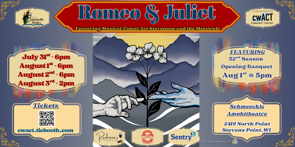 Sponsored in part by the Friends, Central Wisconsin Area Community Theater brings Shakespeare’s Romeo and Juliet to the amphitheater stage! For more information, visit the CWACT website. Stevens Point - Central Wisconsin Community Theater (cwact.org)
